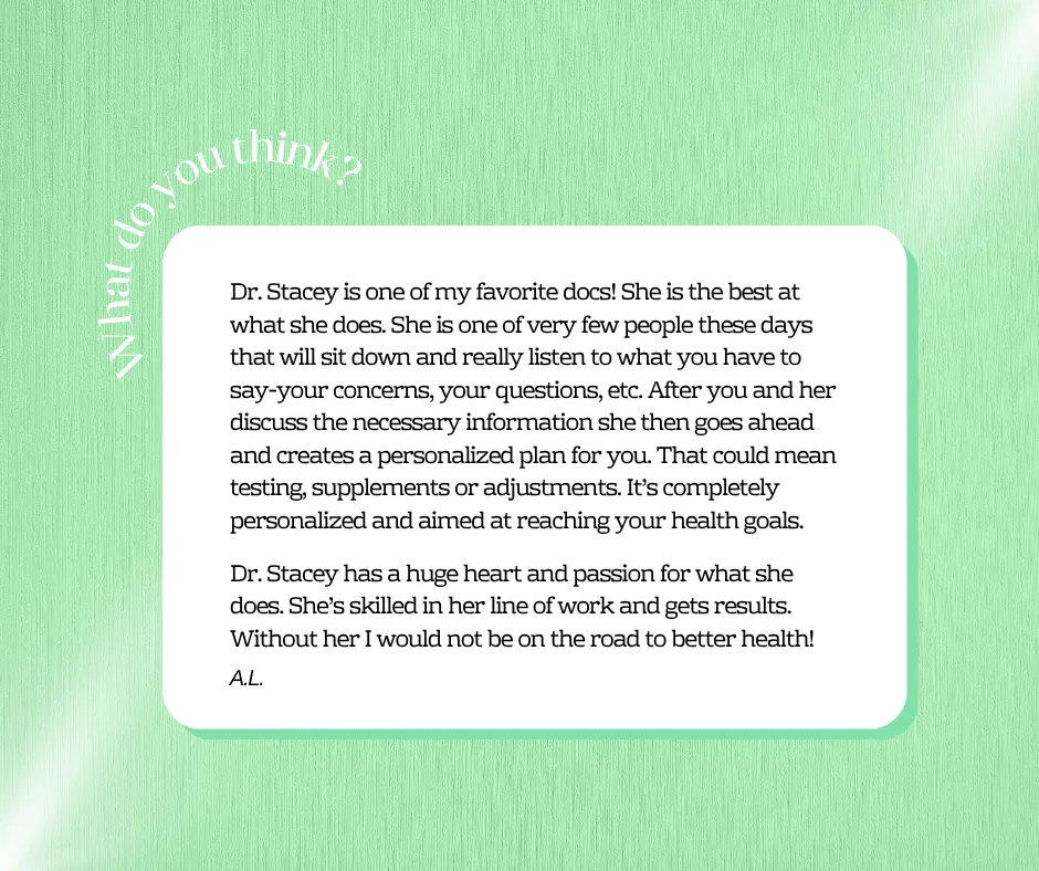 I’ve been in practice for 25 years and am Certified in Functional Medicine. I take continuing education seriously and study weekly to stay up to date with the latest research and approaches.